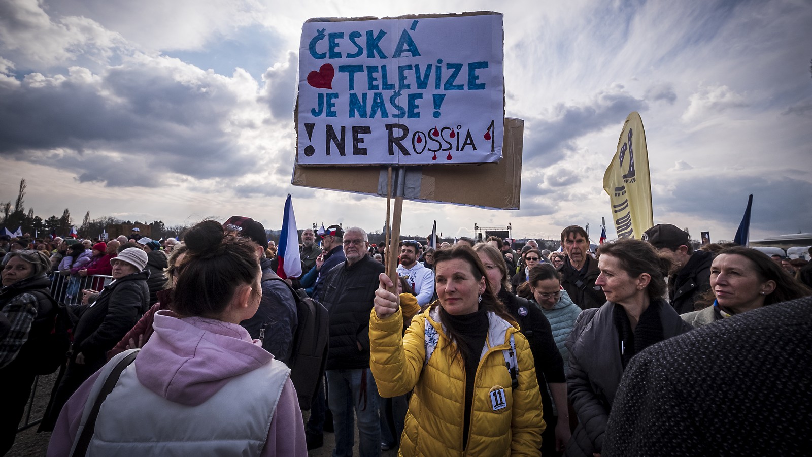 Svěrák, kterého Turek označil za normalizačního umělce, na shromáždění varoval před změnami ve financování České televize a Českého rozhlasu, které chce vláda zavést od příštího roku. Předseda koaličních Motoristů Petr Macinka v sobotu řekl, že demokracii v České republice neohrožuje vláda, ale nátlakové skupiny, které nejsou schopné přijmout výsledky svobodných voleb jen proto, že nezvítězil jejich favorit. Kabinet ANO, SPD a Motoristů podle něj nepodlehne nátlaku opozice, protože koalice je funkční a stabilní.