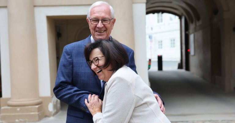 Jan Drahoš s chotí se oddávají nepředstírané legraci. Náhodou je u toho zachytil fotograf. Zdroj: Profimedia