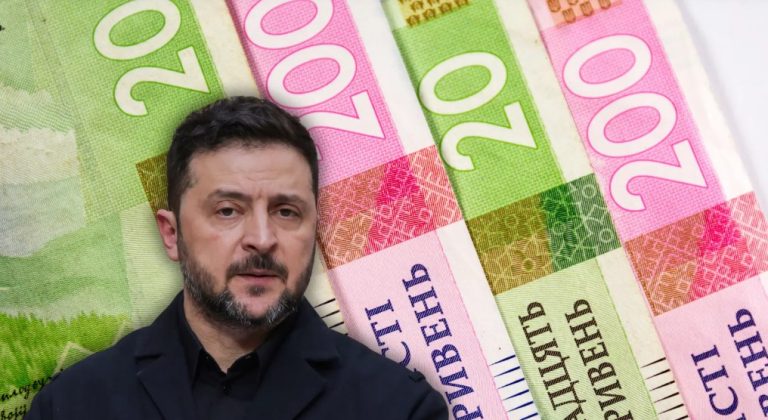 Volodymyr Zelenskyj a ukrajinská měna. Zdroj: Shutterstock