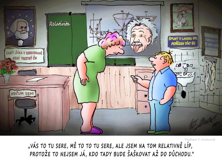 Škola a relativita, Autor vtipu Vladimír T. Gottwald