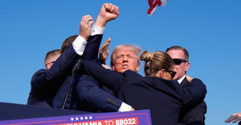 Donald Trump prchal ze sobotního předvolebního mítinku s krvavou ránou na hlavě a v doprovodu ozbrojené ochranky. Zda šlo nebo nešlo o atentát, dlouho nebylo jasné. Americká média nejprve informovala o „bezpečnostním incidentu“, o potvrzené střelbě až se značným zpožděním, přesto, že k ní došlo v přímém přenosu před davem lidí.